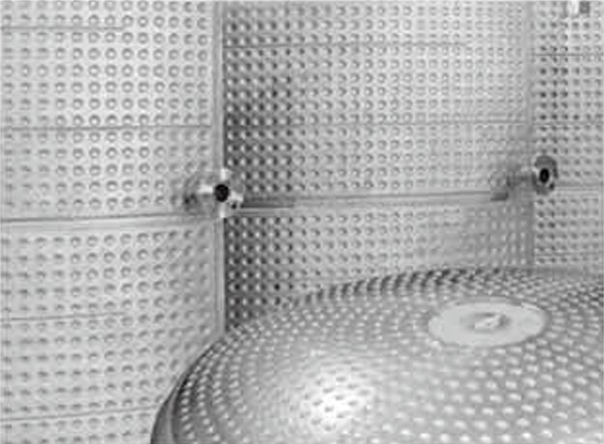 蜂窝夹套 蜂窝夹套内流体的流速比普通夹套大,由于蜂窝点的存在,破坏和减薄了原来的流层.使得蜂窝夹套内的给热系数增加,传热的效果明显优于普通夹套。与一般夹套反应釜相比,大大降低筒体壁厚,降低制造成本。蜂窝夹套的特点:刚性好,换热效率高设备,体积较以往夹套小。